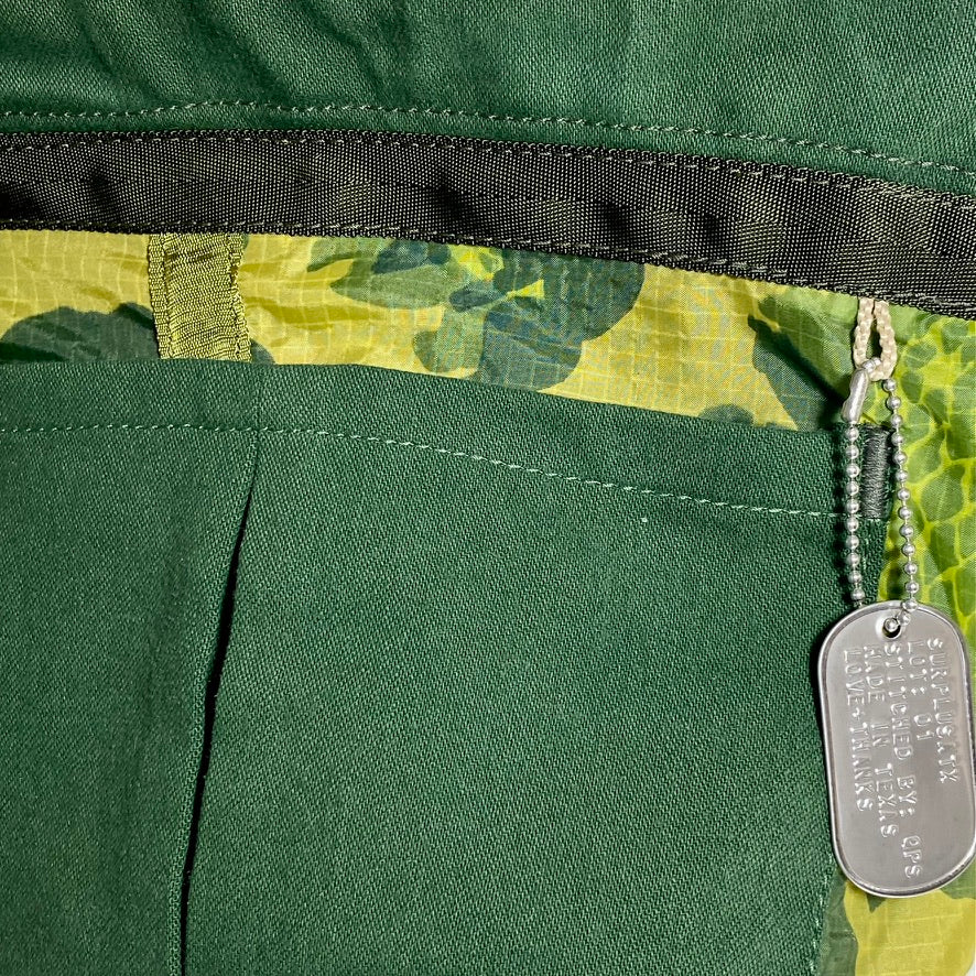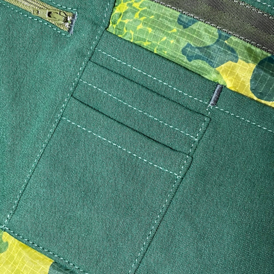 Built from genuine issue military surplus and lined with a military parachute. Each bag is hand dyed, cut and stitched in Texas, and can be repaired, disassembled, refigured, and refreshed.