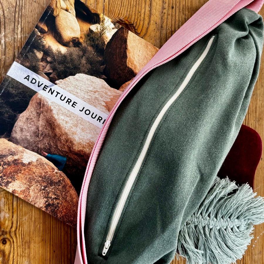 This little upcycled beauty is designed to carry your essentials: keys, cards, and whatever else that gets you through the day in an easy over the shoulder cross body.